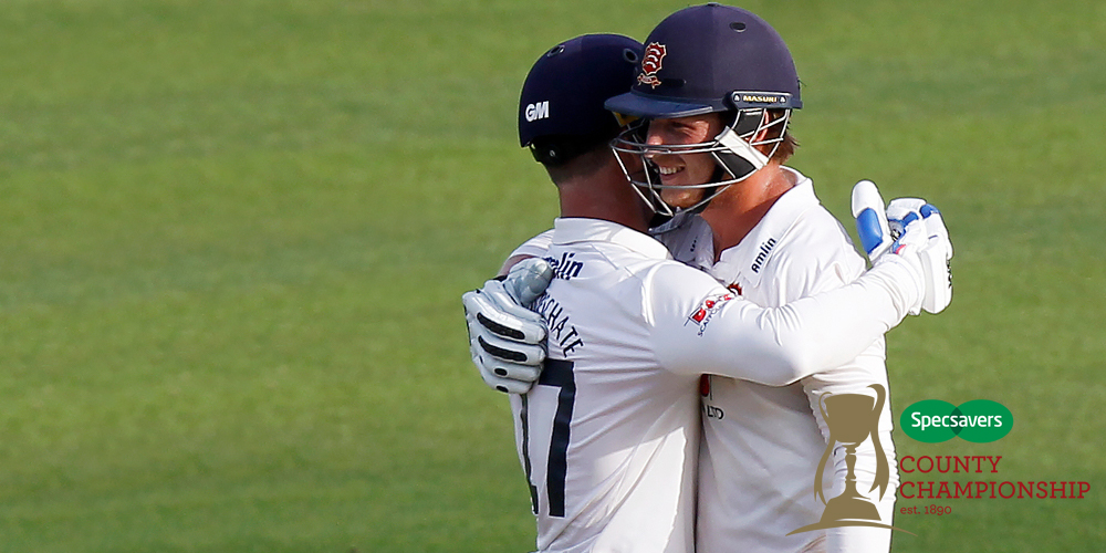 Ten Doeschate became the second Essex batsman to reach 1,000 Championship runs, after hitting the 15 runs required to reach the feat on Day Three.