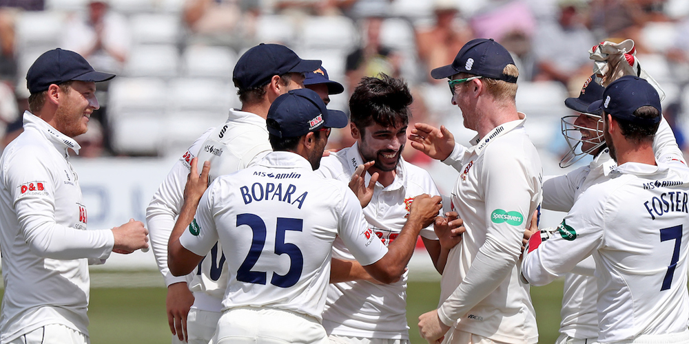 Essex team | Alastair Cook (26), Nick Browne (10), Tom Westley (21), Dan Lawrence (28), Ravi Bopara (25), Ryan ten Doeschate* (27), James Foster+ (7), Paul Walter (22), Simon Harmer (11), Mohammad Amir (5), Jamie Porter (44).