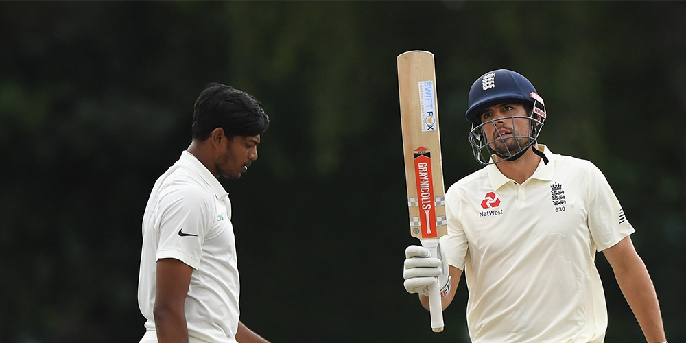 Alastair Cook hit his first century of 2018 in commanding fashion yesterday as he continued his preparations for the forthcoming Test series against India.
