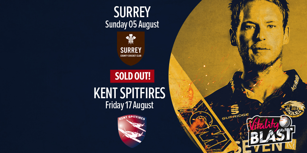 Tickets for the Vitality Blast matches against Surrey and Kent are now sold out. The matches which take place on 5 August and 17 August are set to be action-packed thrillers in front of a full house at The Cloudfm County Ground.