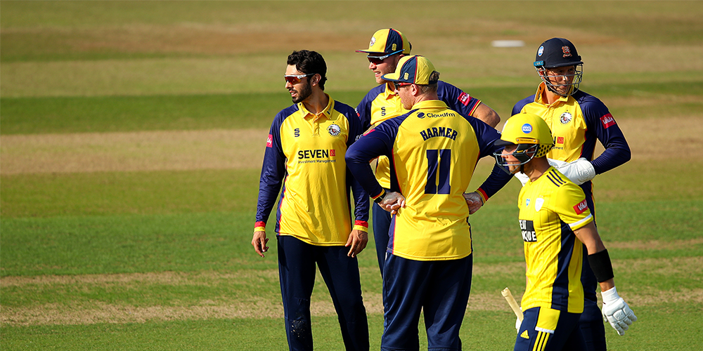 Aron Nijjar and Jack Plom made the headlines with the ball on Wednesday with slow left-armer Nijjar returning career-best figures of 3 for 22 whilst Plom removed England batsman James Vince with the first delivery of his 4 over spell. It was his maiden senior wicket for the Club amongst personal figures of 2 for 18.