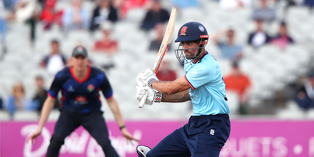 The Lancashire openers had put on 49 before Simon Harmer bowled Luke Wells for 26 and when ten Doeschate (who finished with 2/33 from 8 overs) saw off Josh Bohannon for 34 and Rob Jones, thanks to a magnificent one-handed catch by Josh Rymell for 6, the Eagles were holding sway.
