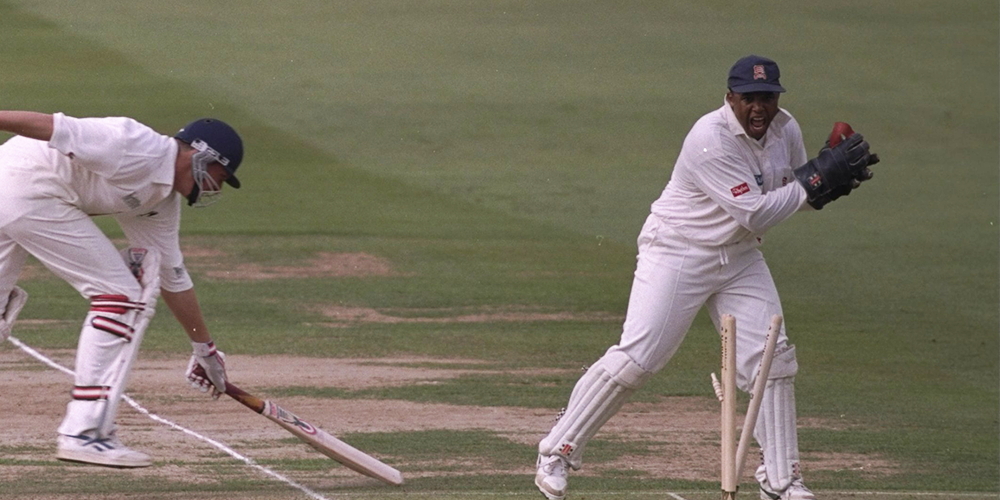 Capped in 1995, he had by then taken over as first-choice keeper from Mike Garnham. His only career first-class century came that summer against Glamorgan when he scored 133 not out at Swansea. That was also the season when he illustrated his batting panache in one-day cricket, when he hammered an unbeaten 67 against Buckinghamshire in the NatWest Trophy on the compact Beaconsfield Ground endangering traffic passing on the adjacent A40. That innings won him Man of the Match award.
