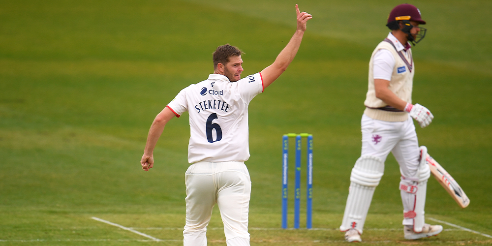 After winning the toss and choosing to bowl, the new ball pair of Mark Steketee and Sam Cook took advantage of favourable conditions to reduce somerset to 70-5 at Lunch.