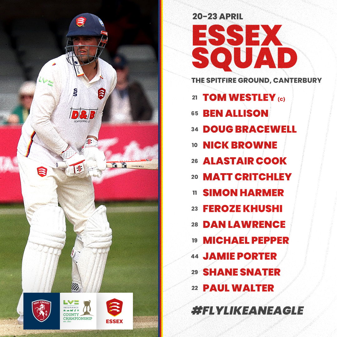 There are two injury forced changes to the Essex 13-player squad with Sam Cook missing out due to a muscle tightness in his hamstring. Adam Rossington will also sit out the fixture after injuring his finger during the draw against Lancashire.