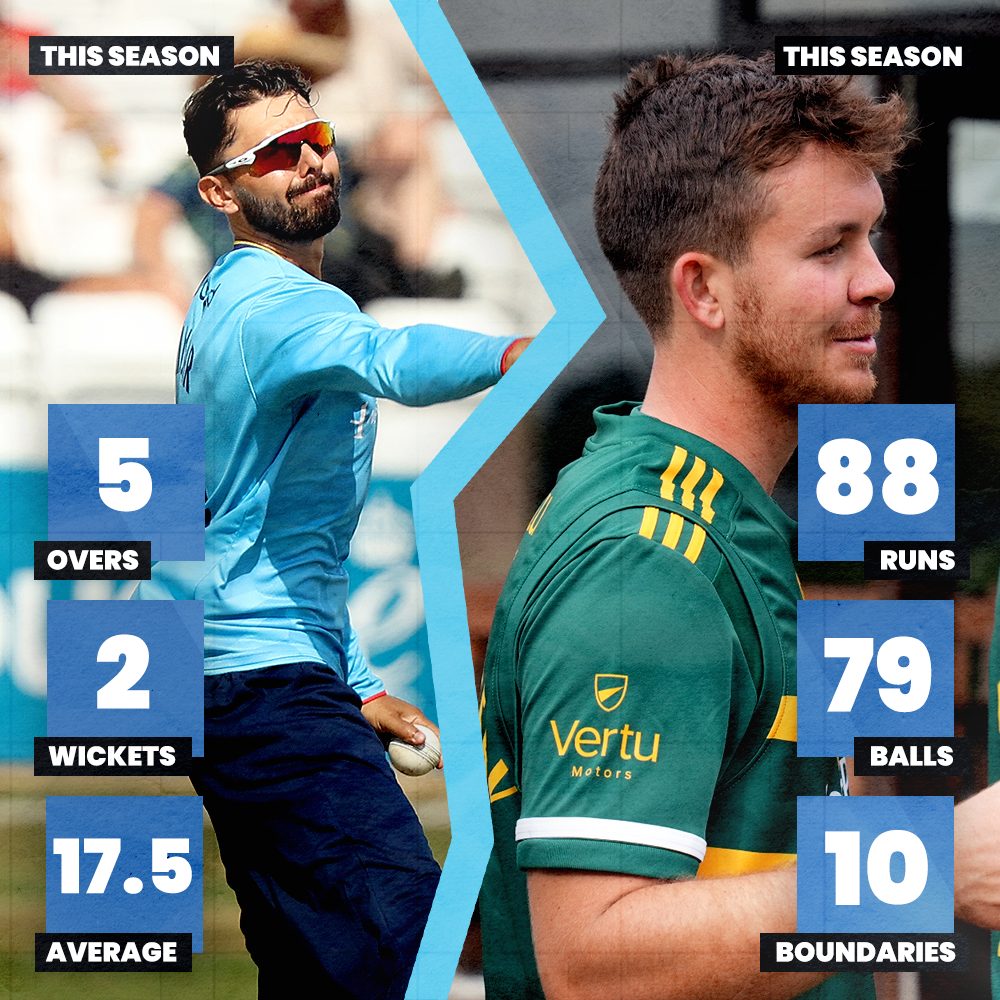 Meanwhile, both sides reached the Vitality Blast knockout stages, though it was only Essex who progressed to Finals Day, as the Outlaws, having finished fourth in the North Group, were defeated at Somerset in the last eight.