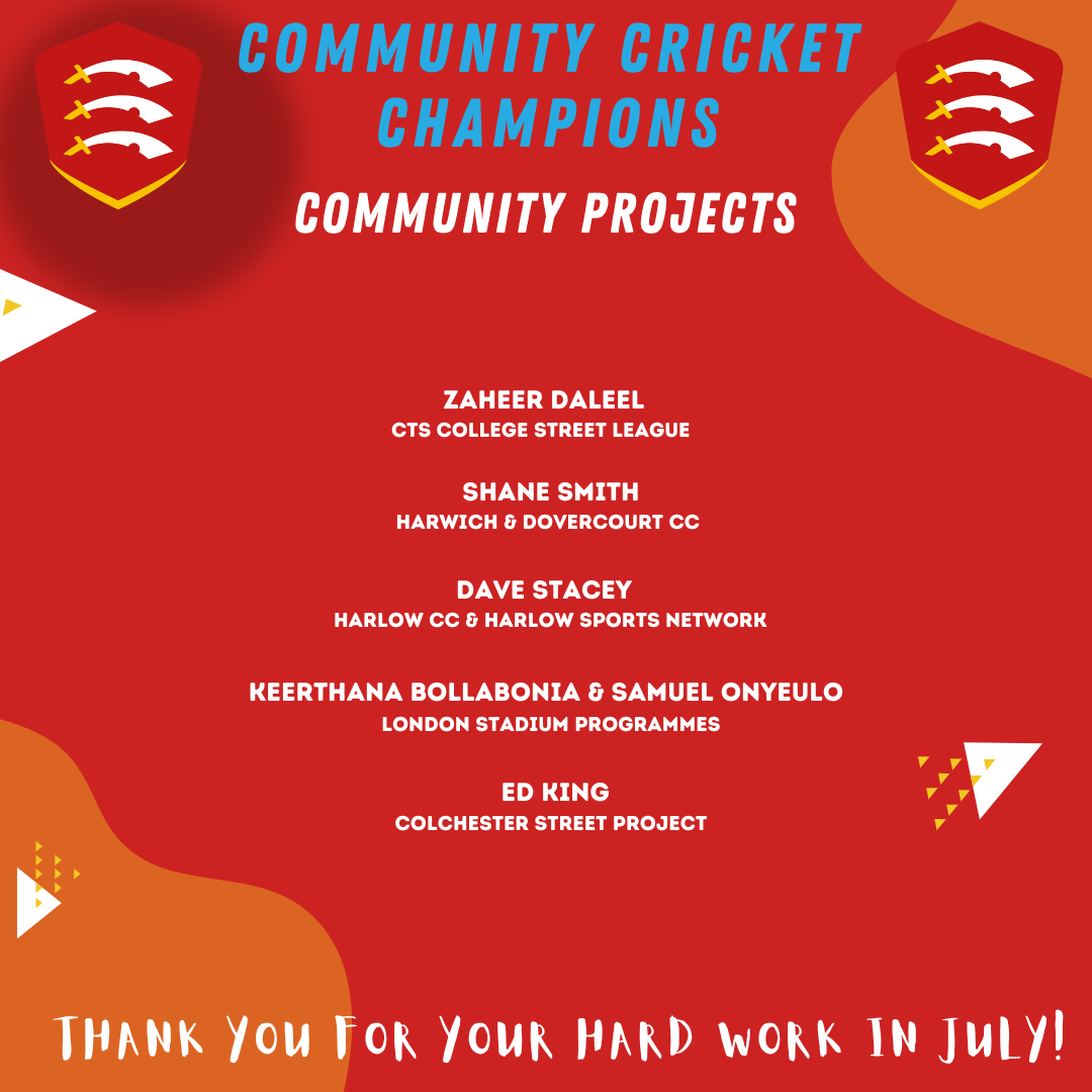 We are delighted to announce that recognised as our Community Cricket Champions for July are: –