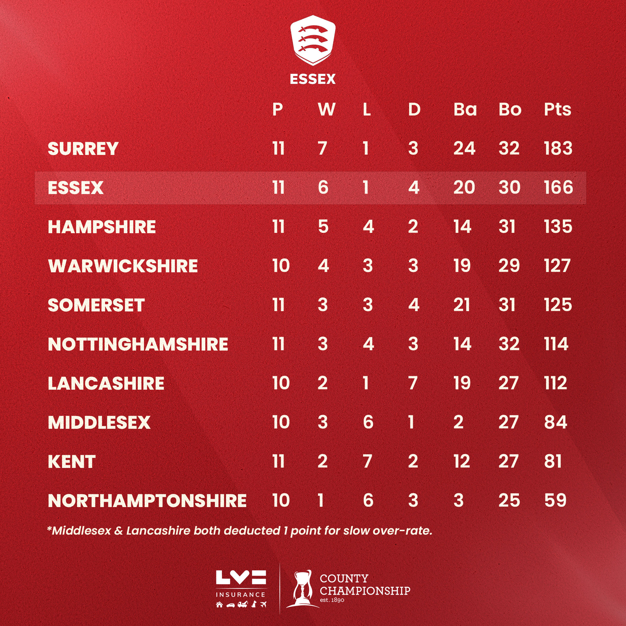 The Eagles’ first assignment of the blockbuster season finale is a home tie against relegation-threatened Middlesex, who are just three points above the drop zone, in Chelmsford.