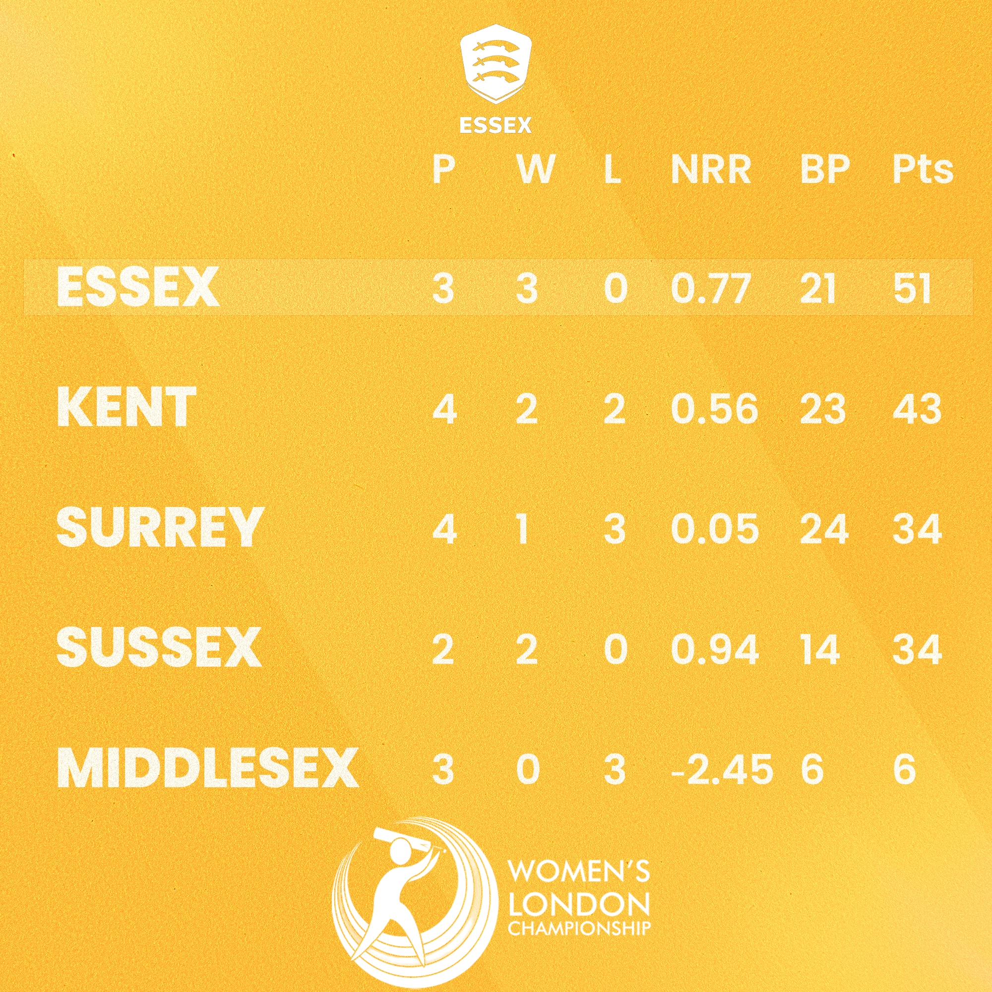 The Eagles have already seen off Surrey, Kent, and in their last match, which was played at The Cloud County Ground, Middlesex, to currently sit atop the five-team table.