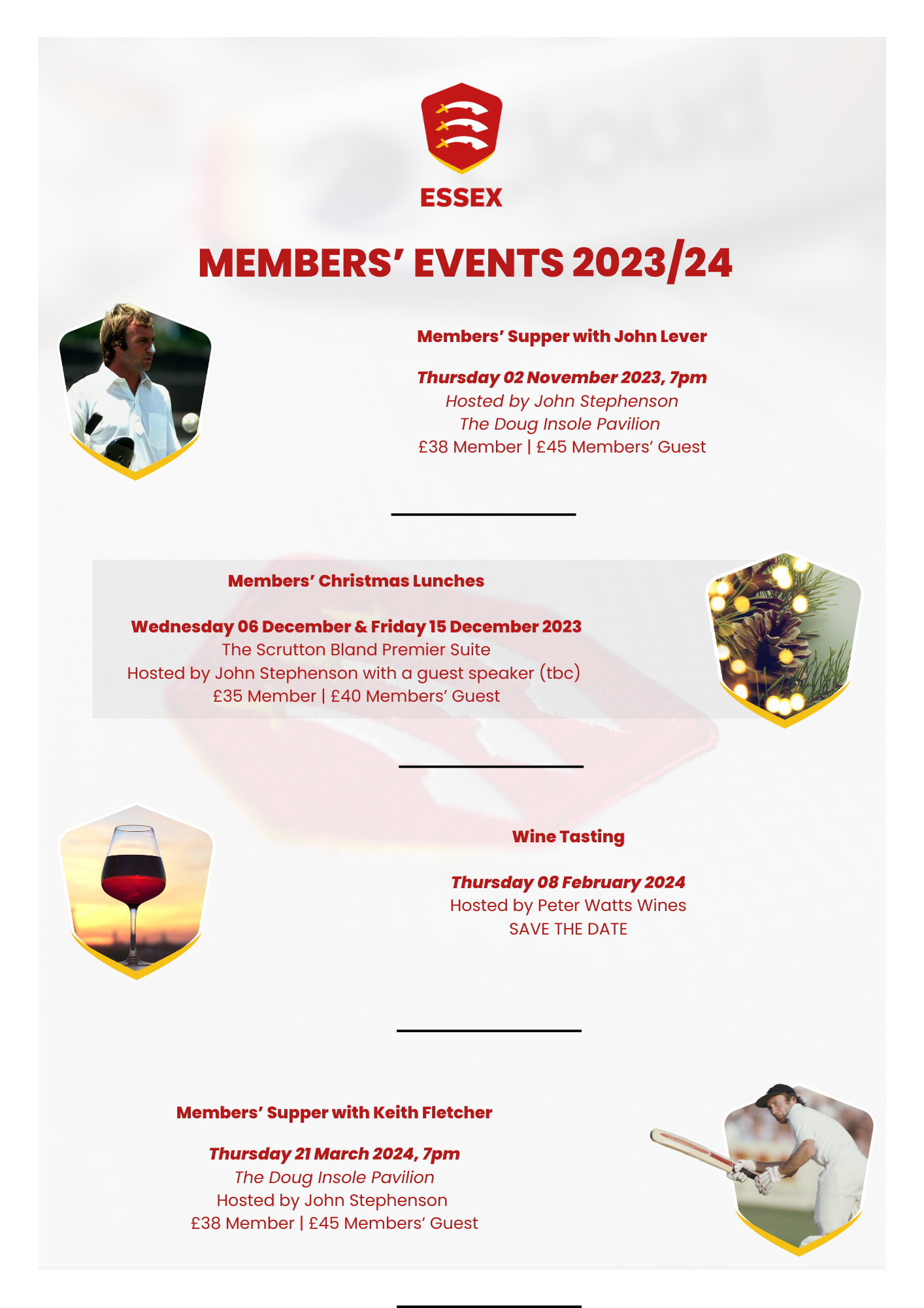 Club legend John Lever will be in attendance for the opening Supper Night on Thursday 02 November to share stories from his playing days with Essex and England.
