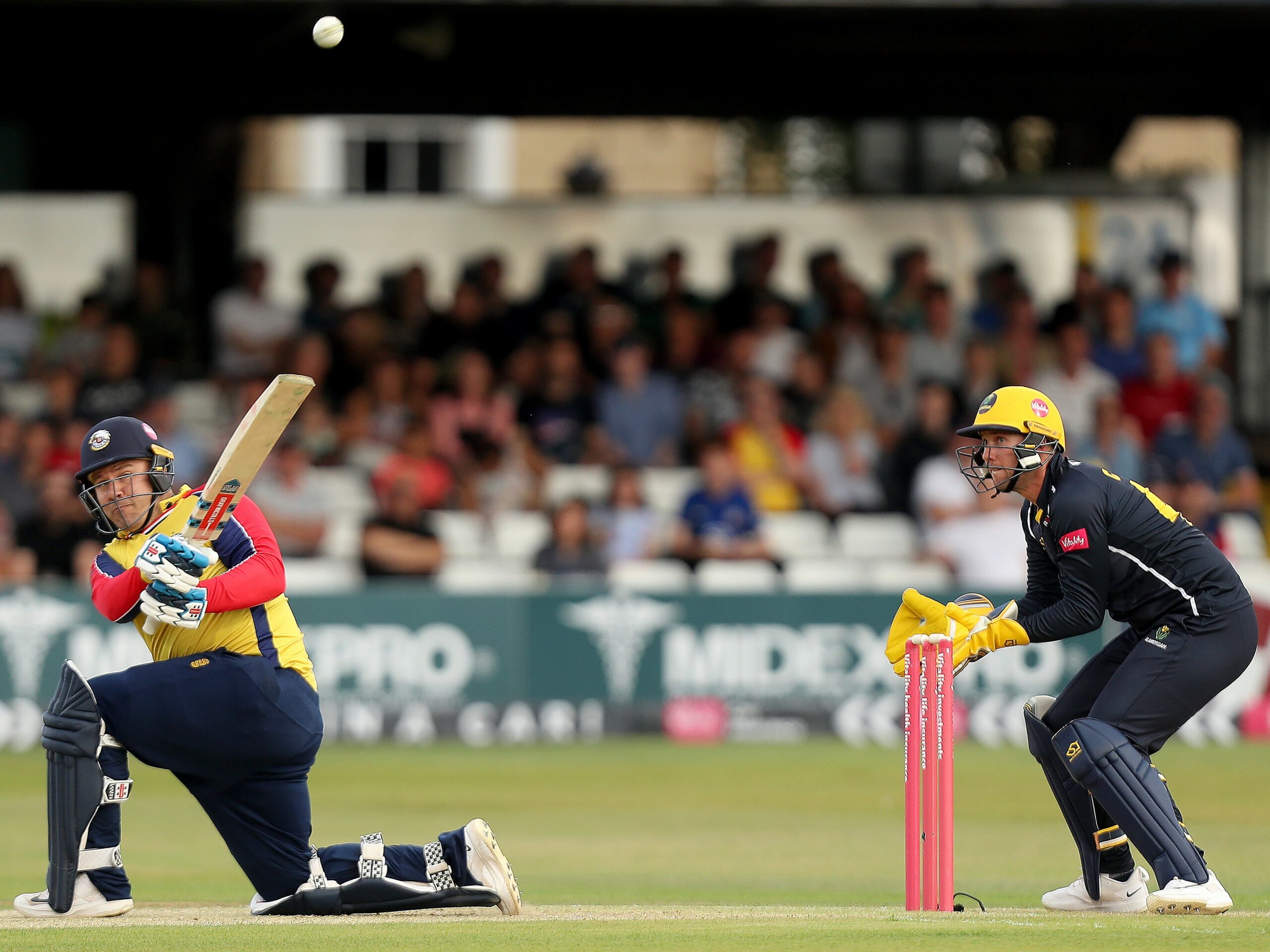 That meant the over had totalled 31, but Essex were not done yet; even though Walter fell to Hogan, his replacement Daniel Sams hoisted three more consecutive sixes to take the score past 200.