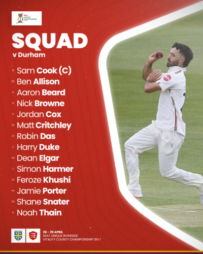 Durham squad: Colin Ackermann, David Bedingham, Scott Borthwick (c), Graham Clark, Paul Coughlin, Brydon Carse, Daniel Hogg, Michael Jones, Alex Lees, Callum Parkinson, Matthew Potts, Ben Raine, Ollie Robinson (wk), Peter Siddle.