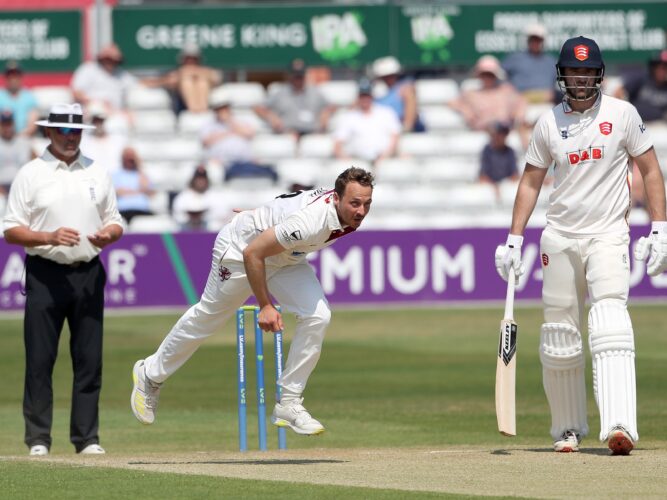Play began following an impeccably-observed minute’s silence to pay tribute to the victims of the Nottingham attacks, Barnaby Webber, who represented Bishops Hull CC in Somerset, and Grace O’Malley-Kumar, who played in Essex age-group sides between 2015 and 2019.