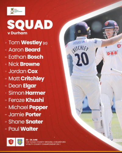 This is the return fixture between the sides this summer after Essex took a trip to the Seat Unique Riverside in late April, returning with 12 points after a washed-out third day forced a draw.