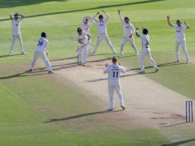 That set up a potentially nail-biting conclusion, with Surrey requiring 273 to win, and when the hosts reduced them first to 39-2 at tea, and then 103-6 later in the evening, a victory charge was on.