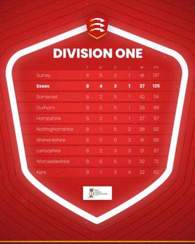 However, having taken a month’s break for the Vitality Blast, they regrouped to last week record another innings win, this time over Worcestershire at New Road, to establish a 12-point lead at the top.