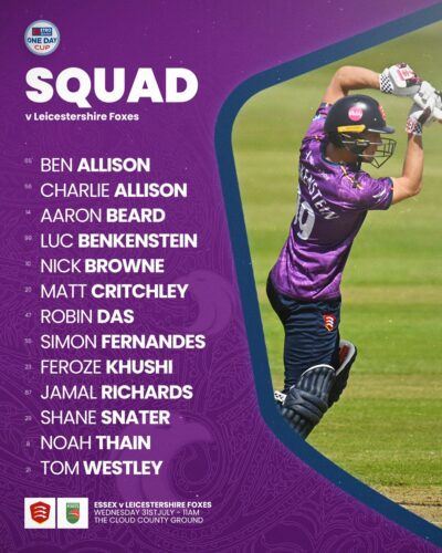 A report will be published on the Club website at the conclusion of the game, while live updates and highlights will be provided on the Essex Cricket social media channels.