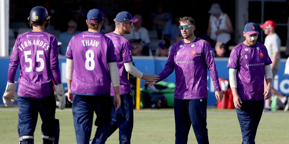 Essex: Robin Das, Feroze Khushi, Tom Westley*, Matt Critchley, Charlie Allison, Luc Benkenstein, Noah Thain, Shane Snater, Jamal Richards, Aaron Beard, Simon Fernandes+