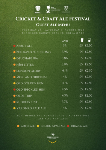 Next week, Essex Cricket and Greene King are joining forces to create a Cricket and Craft Ale Festival during the first three days of the Vitality County Championship fixture between Essex and Worcestershire at The Cloud County Ground.