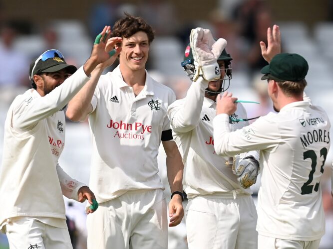 Notts responded with 293, underpinned by Joe Clarke’s century, but their score was somewhat derailed, in no small part by Cook’s hat-trick, from the 259-4 they had earlier stood at.