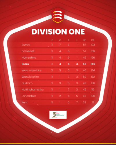 In spite of Jamie Porter’s day one heroics that saw him claim the 19th five-wicket haul of his first-class career, Essex fell short of chasing down a fourth-innings target on day four against the Pears.