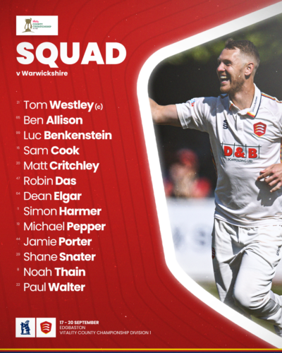 Warwickshire squad: Alex Davies*, Ed Barnard, Danny Briggs, Michael Burgess, Sam Hain, Oliver Hannon-Dalby, Jake Lintott, Craig Miles, Dan Mousley, Will Rhodes, Craig Rushworth, Hamza Shaikh, Rob Yates