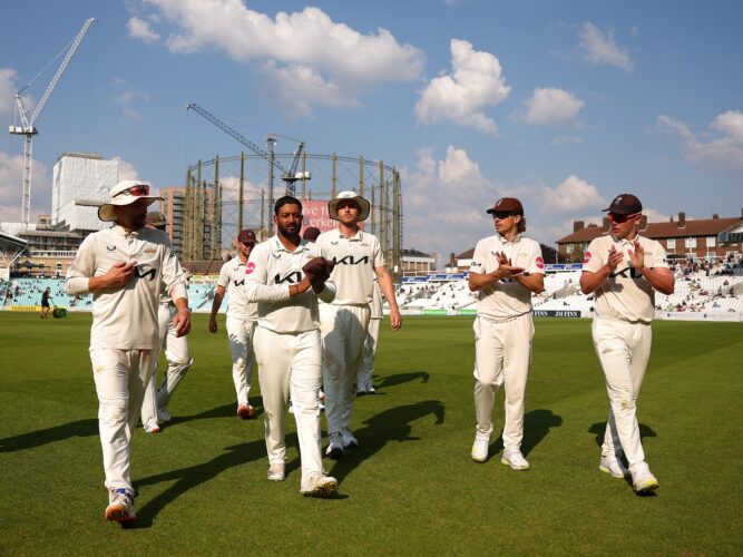 However, a sizeable home win for Gareth Batty’s side over Durham in the last round of fixtures, coupled with defeat for Somerset against Lancashire at Old Trafford, handed Surrey the title.