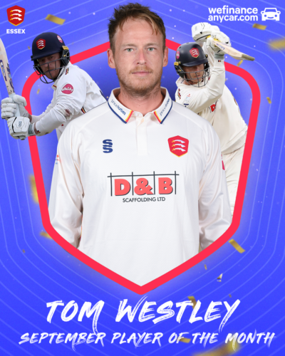 Essex Club Captain Tom Westley has been revealed as the winner of September’s wefinanceanycar.com Player of the Month award.