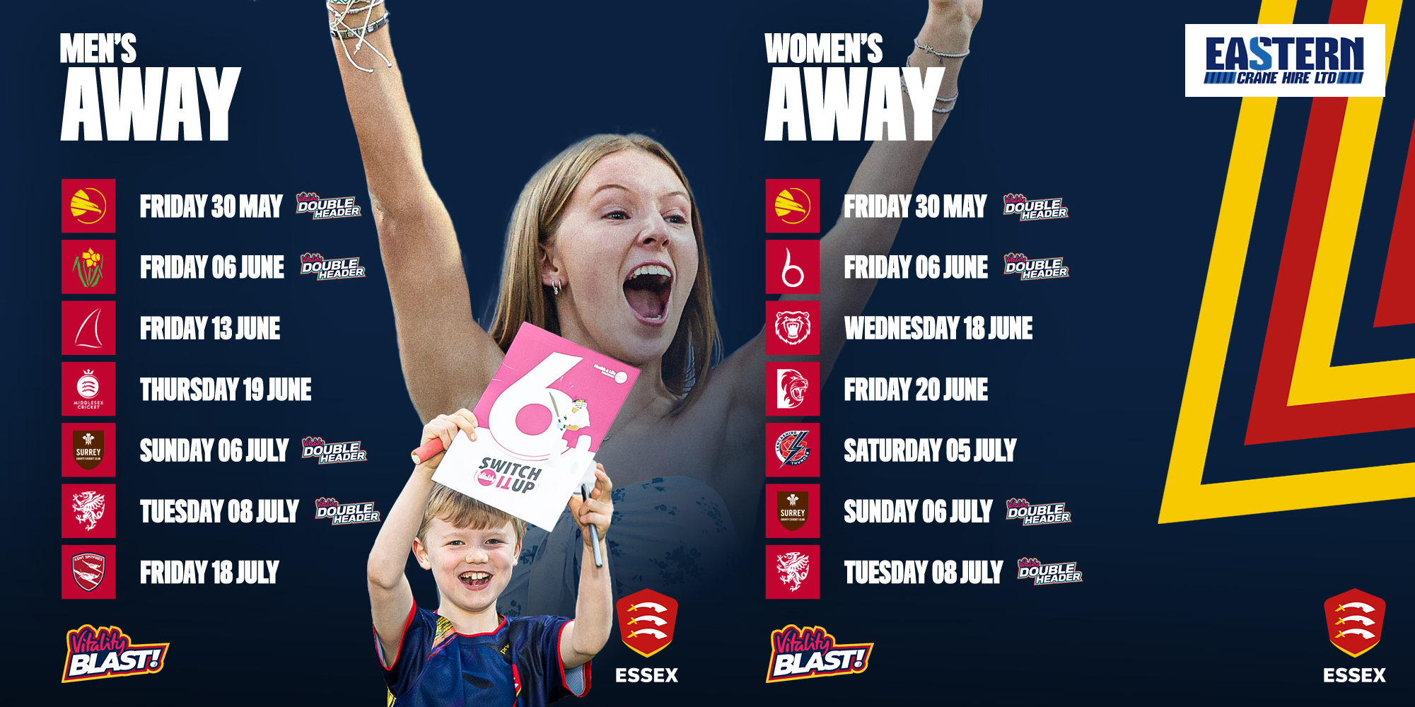 Essex’s 2025 Vitality Blast campaign begins with a double-header against Hampshire at the Ageas Bowl on Friday 30 May.