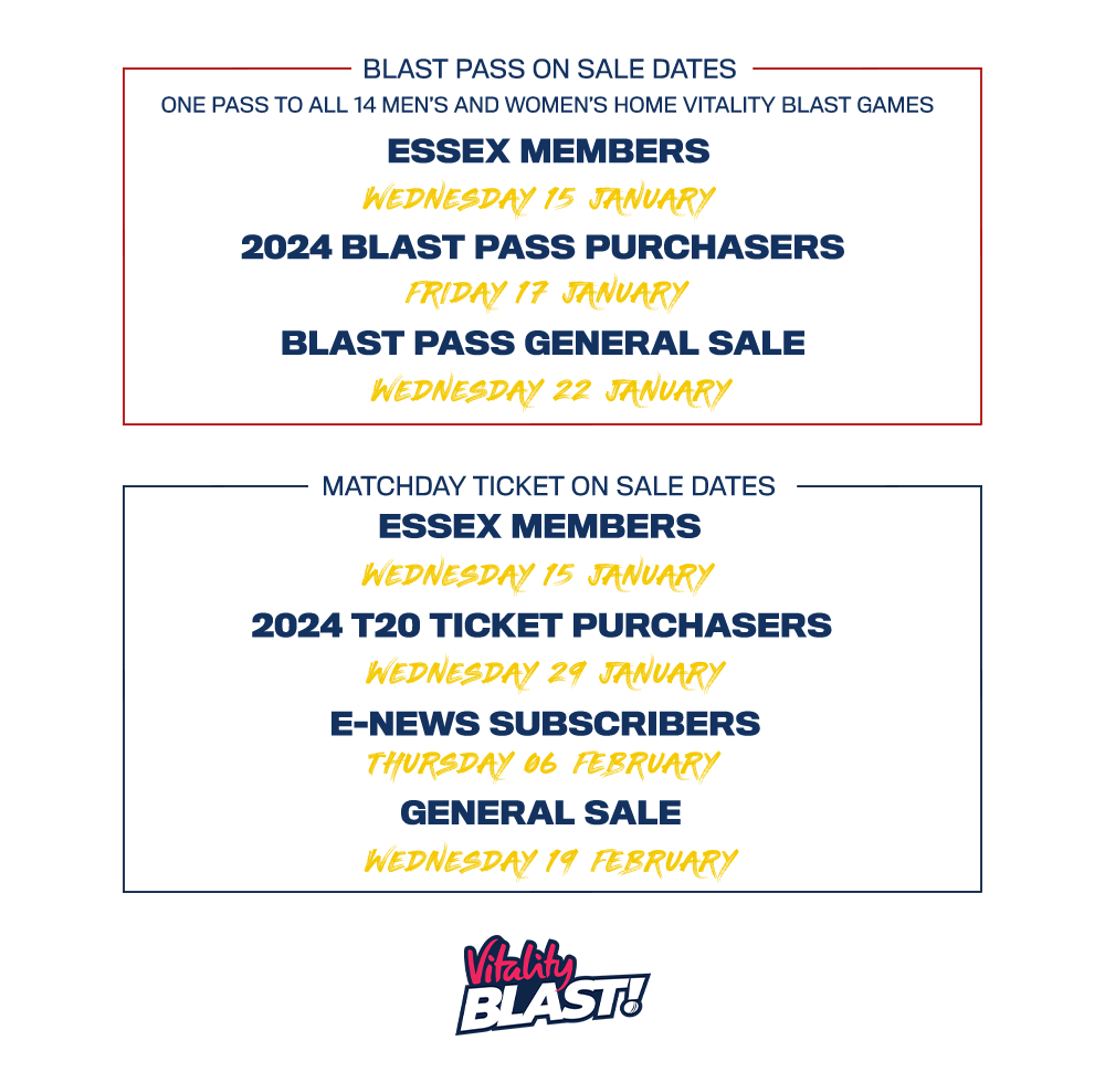 Vitality Blast tickets and Blast Passes are now available to 2025 Essex Members.