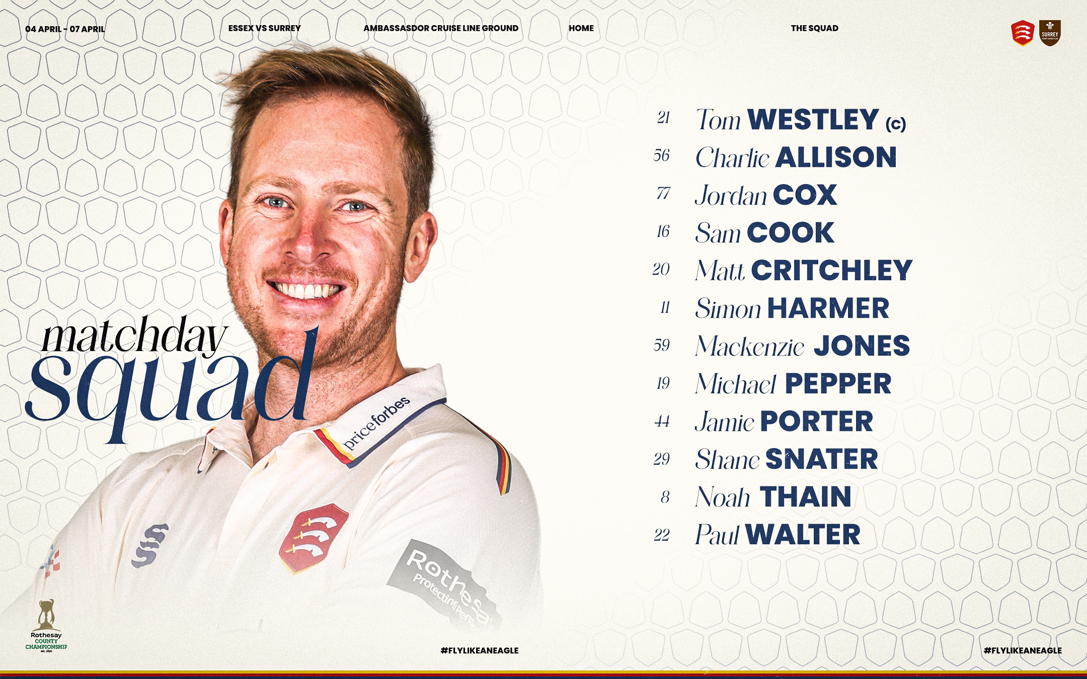 Under the leadership of Head Coach Gareth Batty and captain Rory Burns, the Brown Caps boast a host of England international stars, as well as former Eagle Daniel Lawrence. Surrey have reinforced their squad with New Zealand all-rounder Nathan Smith while also retaining West Indian pace bowler Kemar Roach as their overseas options.