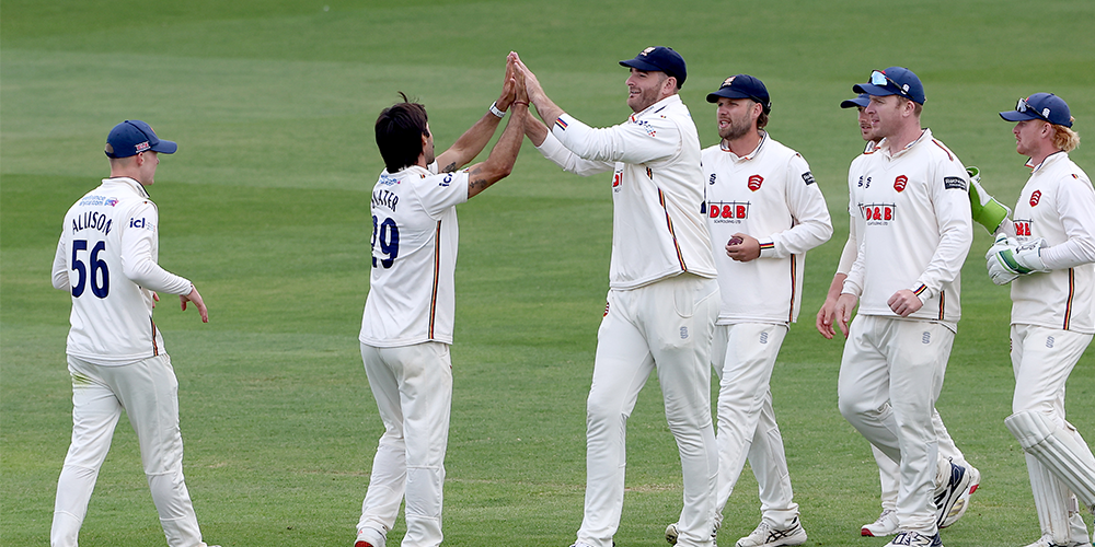 Pepper returned with Allison as his runner, but his dismissal initiated the beginning of the end of Essex’s innings as the last three wickets fell for two runs. Pepper was trapped lbw before Allison came to the party with two wickets in three balls. Harmer finally departed to a fourth catch at the wicket by Roderick, and then Porter lost his off-stump to his former team-mate.
