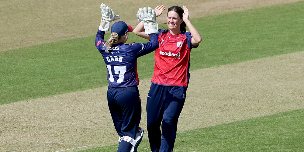 Bouchier fell one shy of her best of 93 when Grace Scrivens bowled her, but the last four overs didn’t see a massive slowdown, as Freya Kemp’s first appearance of the summer returned 20 off 13, with Georgia Adams 22 off 13.