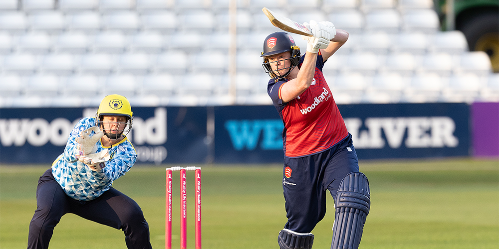 One shot too many saw her hole out at mid-on off Kate Coppack, but Essex missed out on a second scalp in the powerplay when Wong, promoted up the order was reprieved on 11, a skier dropped at mid-off by Scrivens. The drop didn’t prove expensive with the England all-rounder caught soon afterwards from the bowling of the in-form MacGregor who scattered the stumps of the dangerous Laura Harris later in the same over.