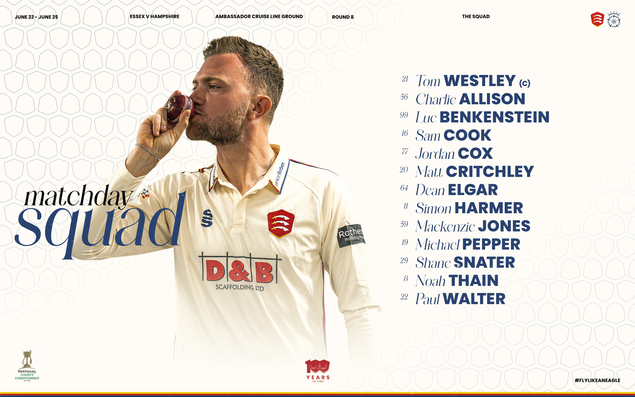 The Ambassador Cruise Line Ground will welcome the southern outfit to Chelmsford for round 8 of the Rothesay County Championship, in what promises to be a scorching few days of red-ball cricket.
