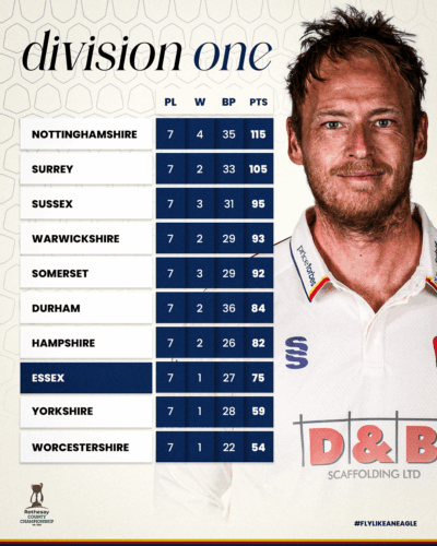 Hampshire sit just one place above Essex in the Division One table, clear by just 7 points as both sides will want to shift away of the bottom two, Yorkshire and Worcestershire.