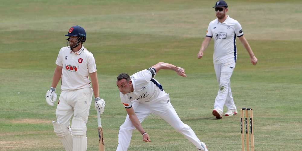 He was the senior partner in a 107-run seventh-wicket stand with Simon Harmer, 16 years older, that carried Essex towards 292-8 at the close after they chose to bat. He also put on 66 for the fifth wicket with Matt Critchley, whose 71 came from 104 balls and included nine fours and a six.