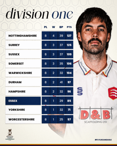 Honours were even as Essex claimed the draw and took 10 points from the match, ahead of the upcoming visit to York Cricket Club to face Yorkshire.