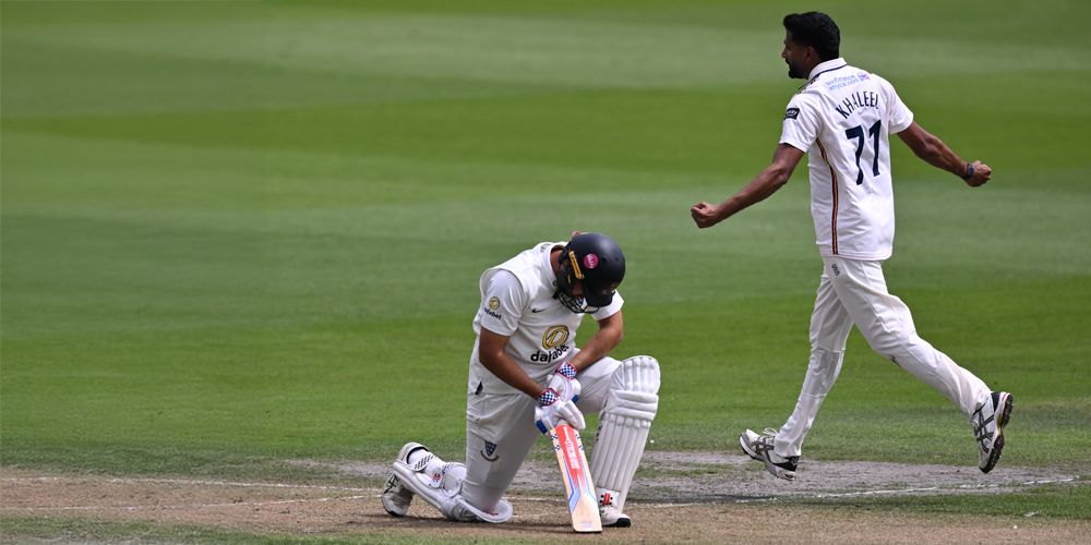 Sussex’s seam attack struggled in the absence of the rested Ollie Robinson, and with the Kookaburra ball offering little assistance skipper John Simpson soon adopted a containment strategy by rotating his attack in short spells in search of a breakthrough.