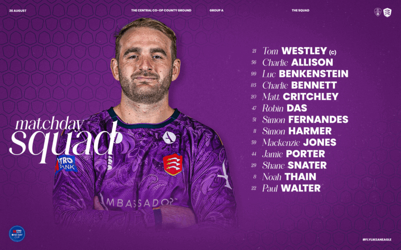 Essex: Feroze Khushi, Josh Rymell, Tom Westley (C), Grant Roelofsen, Robin Das, Will Buttleman (WK), Aaron Beard, Shane Snater, Aron Nijjar, Jamal Richards, Jamie Porter.