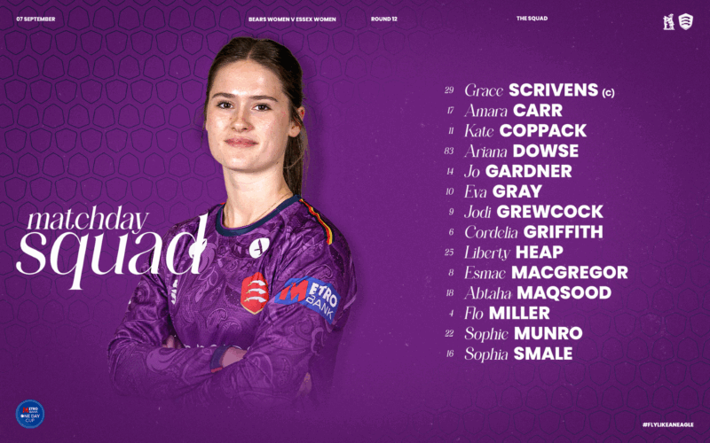 Essex: Grace Scrivens (C), Jo Gardner, Cordelia Griffith, Jodi Grewcock, Flo Miller, Lissy Macleod, Sophia Smale, Amara Carr (WK), Eva Gray, Sophie Munro, Kate Coppack.