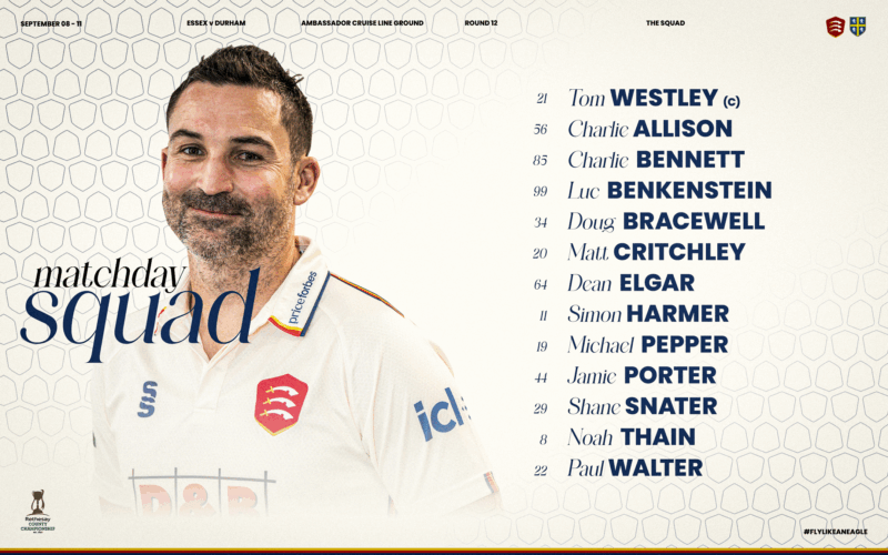 Essex Men are back in Rothesay County Championship action starting on Monday as they host Durham in the first of the final three matches of the 2025 season.