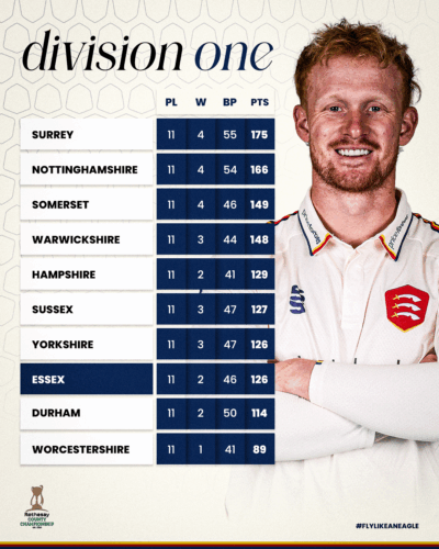 Durham find themselves in ninth place in the table, one spot below Essex, with just twelve points separating the two sides.