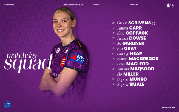 Essex Women: Grace Scrivens (C), Lissy Macleod, Cordelia Griffith, Jodi Grewcock, Flo Miller, Sophia Smale, Amara Carr (WK), Eva Gray, Esma MacGregor, Kate Coppack, Abtaha Maqsood.