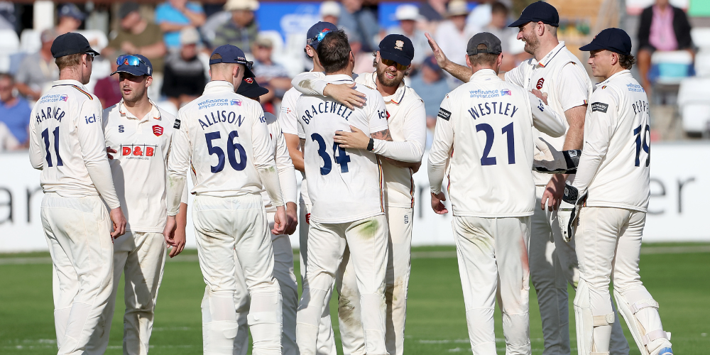 Day 2: The bowlers responded superbly, Simon Harmer taking 4-43 and the seamers sharing the rest as Somerset folded for just 145, giving Essex a lead of 61. By stumps, Jordan Cox (61*) had guided Essex into a dominant position at 163/4, the lead already 224.
