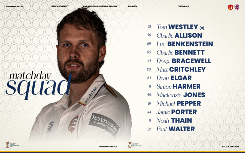 Essex: Dean Elgar, Paul Walter, Tom Westley (C), Jordan Cox, Matt Critchley, Michael Pepper (WK), Noah Thain, Simon Harmer, Sam Cook, Kasun Rajitha, Jamie Porter.